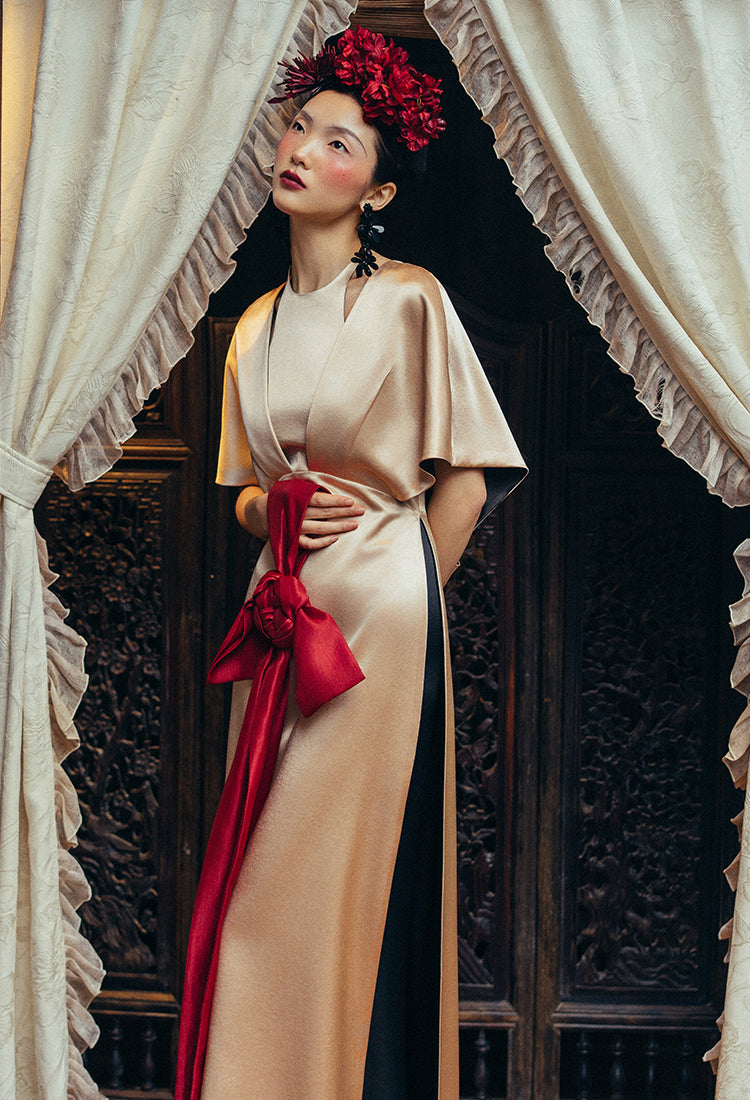 A sculpted silhouette in luminous tones, commanding elegant evenings.