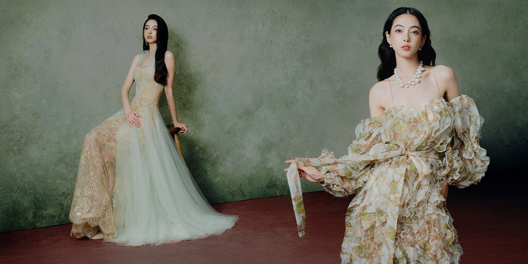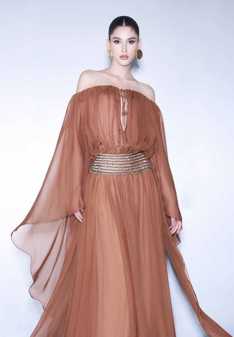 This brand is known for romantic silhouettes inspired by goddess-like beauty, combining artistic details with graceful elegance.