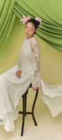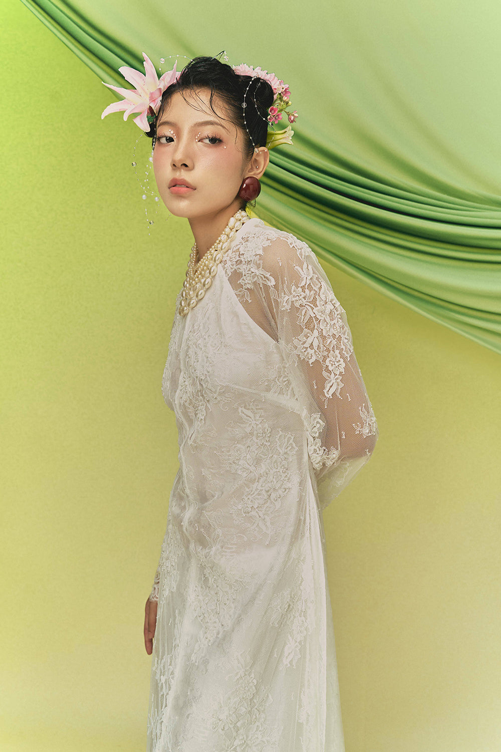 Expertly crafted, this A-line Ao Dai set features a sophisticated mandarin collar and wide sleeves in luxurious taffeta. Ideal for formal events, cultural celebrations, or elegant gatherings.