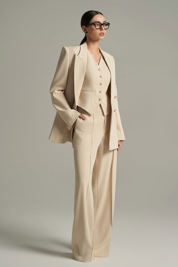 مزيج مذهل من الكلاسيكية والمعاصرة، السترة تنضح بالرقي. تصميمه المستقيم والأكمام الطويلة مصنوع من سروال قصير فاخر، مما يجعله إضافة خالدة لأي خزانة ملابس. ارتقي بأسلوبك مع هذه القطعة الحصرية.