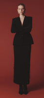 Introducing the blazer, a luxurious and modern addition to your wardrobe. Made with smooth poly silk, this blazer offers a sleek and professional look without the fuss of a lapel. Its hourglass shape enhances your silhouette and exudes confidence.