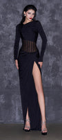 Gianna Slit Corset Waist Spandex Long Length Dress
