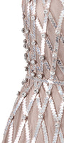 Special Features: Attached crystal along the dress, Rhombus pattern with sequin, Sheer effect, Crisscross with zipper at the back