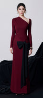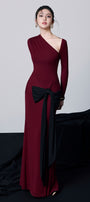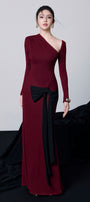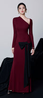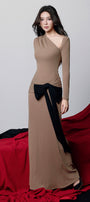 Melanie Asymmeytric Neck Ribbon Maxi Dress