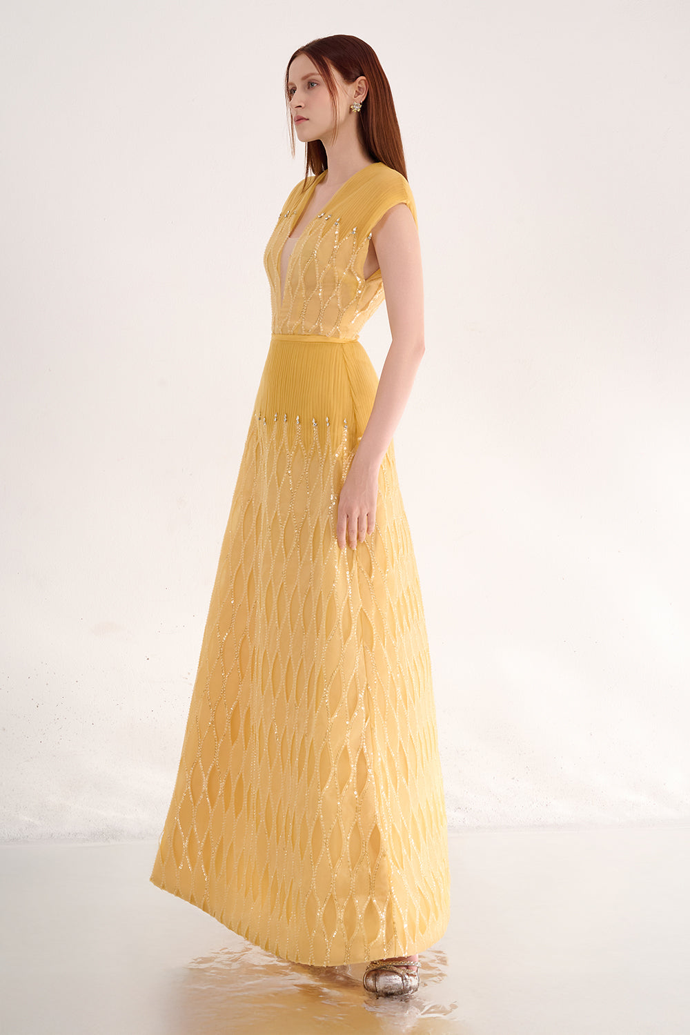Rylee A-line Plunge Neck Polyester Maxi Dress