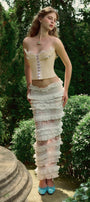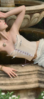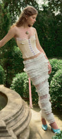The corset offers a sleek, form-fitting silhouette with expert tailoring. Crafted from luxurious taffeta, it features a straight-across neckline that highlights the collarbone and shoulders with clean, modern lines. The corset design provides structured support and enhances the waist, creating a flattering hourglass shape. Perfect for sophisticated occasions, this piece combines elegance with precise fit for a confident, polished look.