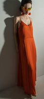 Expertly crafted, this dress is a luxurious addition to any wardrobe. Made from high quality silk, it boasts an A-line silhouette and a side slit for added movement and elegance. Perfect for formal events, this dress exudes sophistication and style.