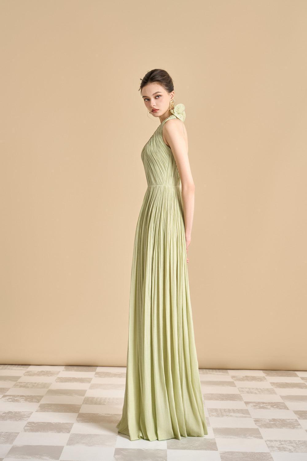 Nasir Gathered Scoop Neck Tencel Floor Length Dress
