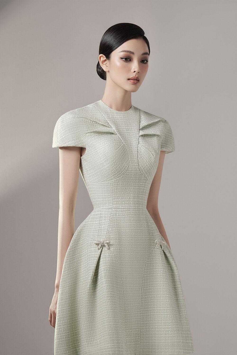 تصميم على الرغم من أنه ليس متفاخرًا جدًا، إلا أنه لا يزال دقيقًا للغاية ويجذب كل الأنظار بسهولة بتفاصيل صغيرة مزينة بمهارة. كما يساهم الخصر المجهز مع التنورة المنتفخة على شكل حرف A في إضفاء مظهر جذاب على منحنيات مرتديها.