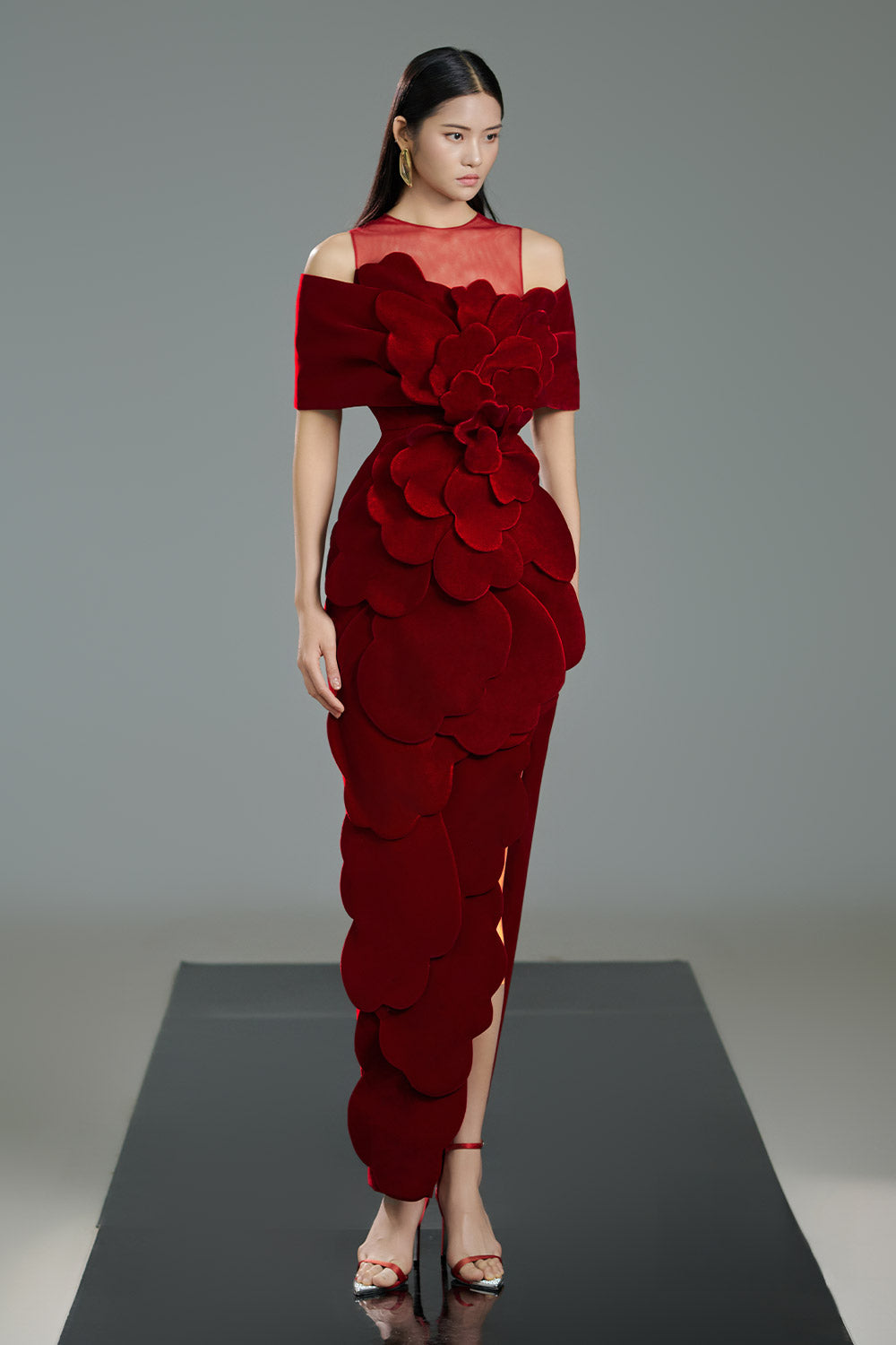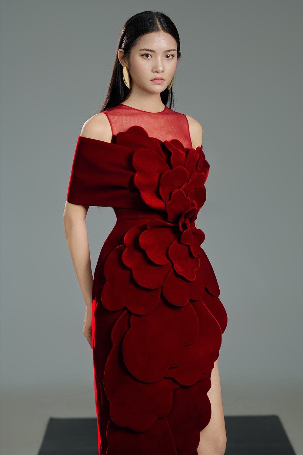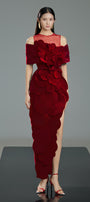 Gloria Pegged Side Slit Polyester Maxi Dress