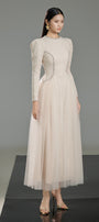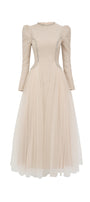 Cardenas A-line Puffy Sleeved Polyester Ankle Length Dress