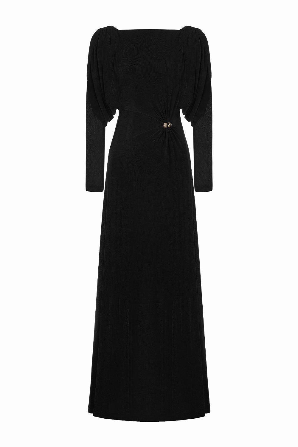 Diva Straight Boat Neck Knitted Fabric Maxi Dress