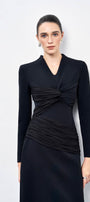 Asymmetrical twisted at the chest, Diagonal gathered at the waist, Back slit