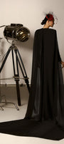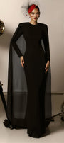 Savanna Sheath Cape Shoulder Crepe Maxi Dress