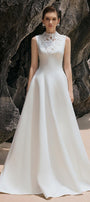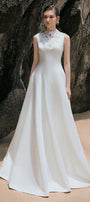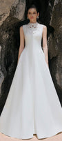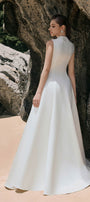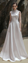 Expertly designed for a stunning and elegant look, the dress features a flattering A-line cut and wavy satin fabric. Enhance your figure with this statement dress, perfect for any formal occasion.