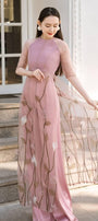 تظهر مجموعة Ao Dai بشكل بارز مع زخارف زهور ثلاثية الأبعاد أسفل اللوحات التي ترسم بمهارة صورة حية للزي العام. تم اختيار مواد الحرير والأورجانزا عالية الجودة، مما يجعل التصميم أكثر رقة وأنوثة.