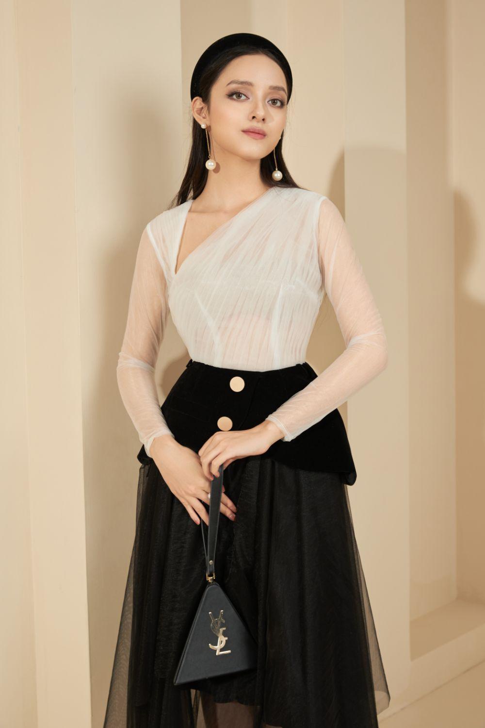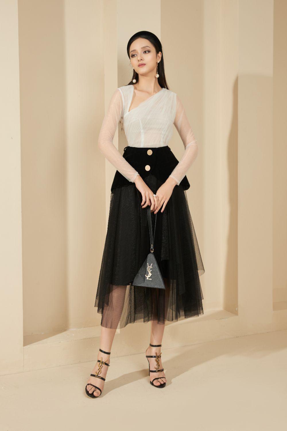 تشتمل هذه المجموعة ذات الطراز العتيق على بلوزة بأكمام طويلة مع تفاصيل فتحة قطرية في الرقبة وتنورة شبكية شفافة ذات طبقات. سيكون هذا تصميما قابلاً للتطبيق بدرجة كبيرة، ومناسبا للسيدات لارتدائه للعمل ومقابلة الأصدقاء والحفلات.