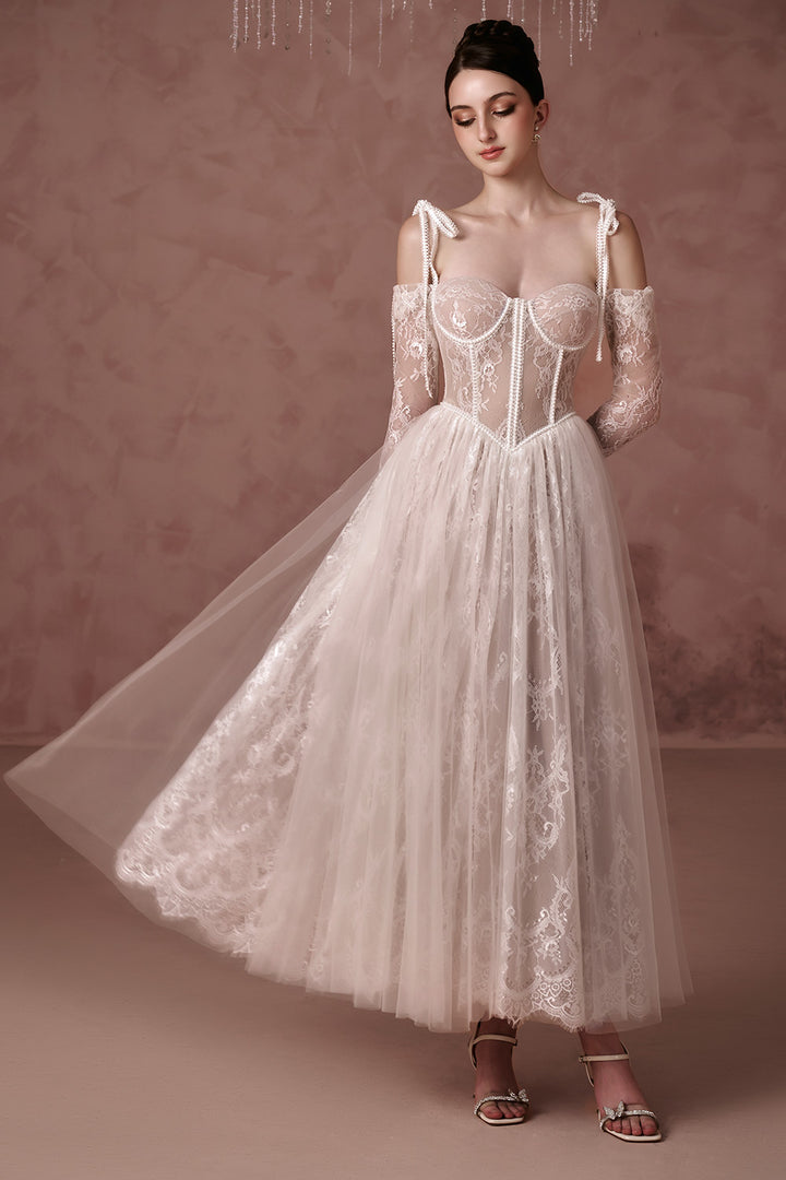 | Special Features | Corset design, String tie on the shoulder, Floral lace patterns, Draped skirt |