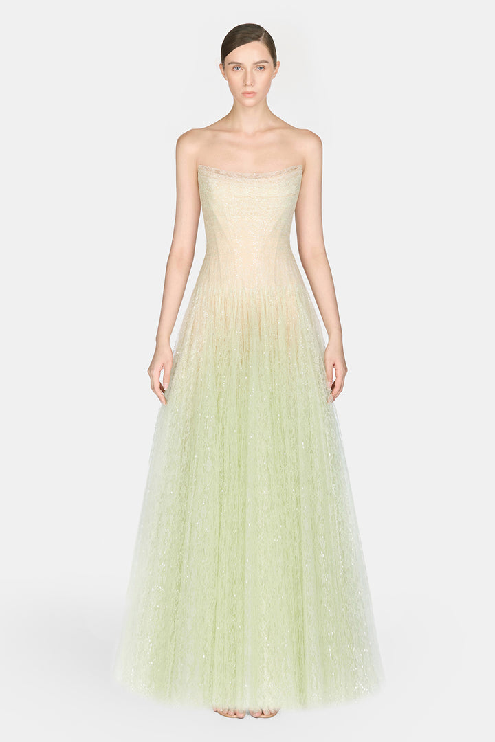 Effortlessly elegant, the dress features a strapless design and gathered details for a sophisticated silhouette that will take you from day to night. Crafted with delicate lace, this dress exudes timeless beauty and will elevate any occasion.