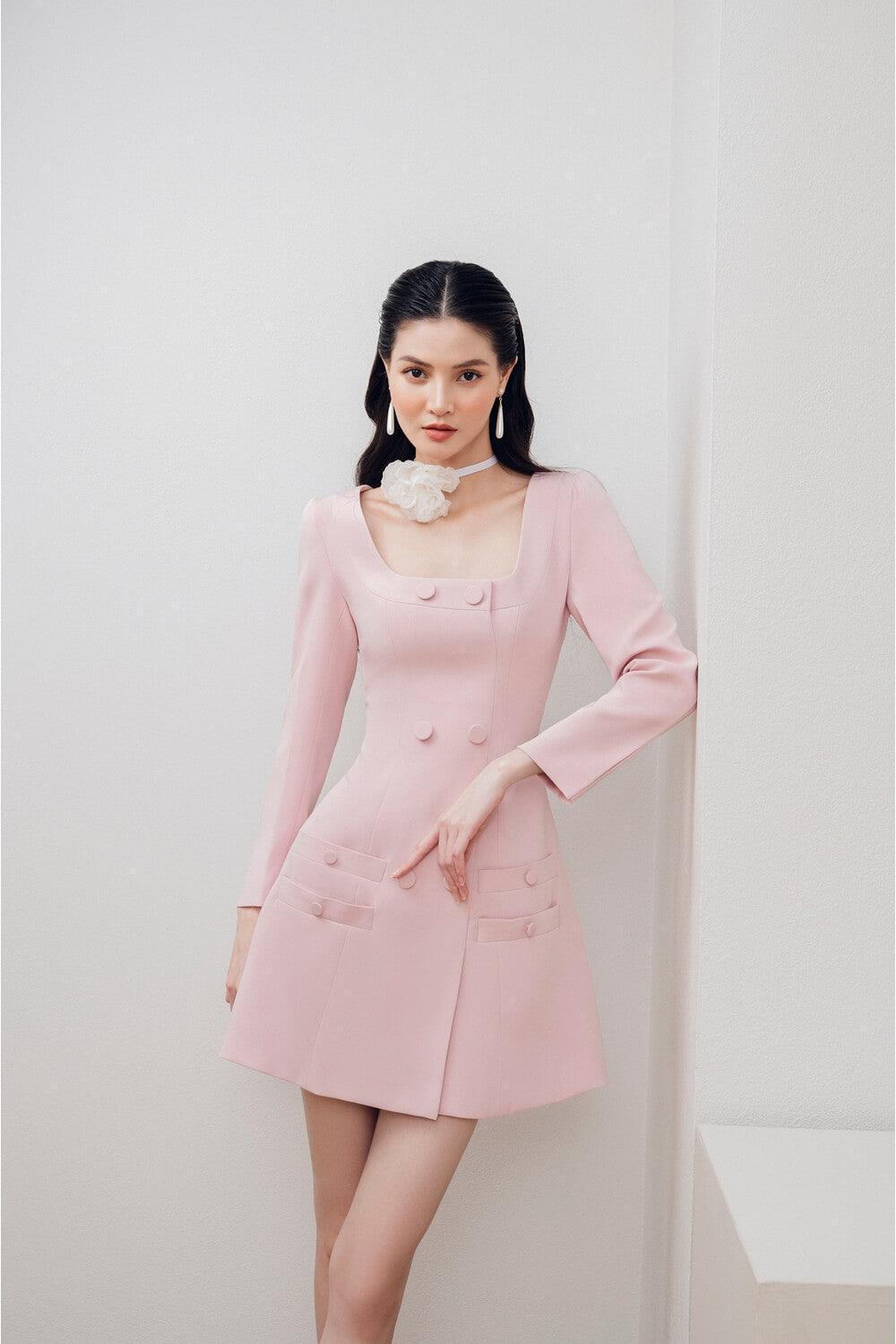 بألوان وردية لطيفة، يمنح الفستان من ترتديه لمسة جميلة وأنثوية لكنه لا يزال ينضح بأناقتها. تم اختيار مادة سباندكس ألماسية عالية الجودة لإضفاء المظهر الأكثر عصرية على المنتج.