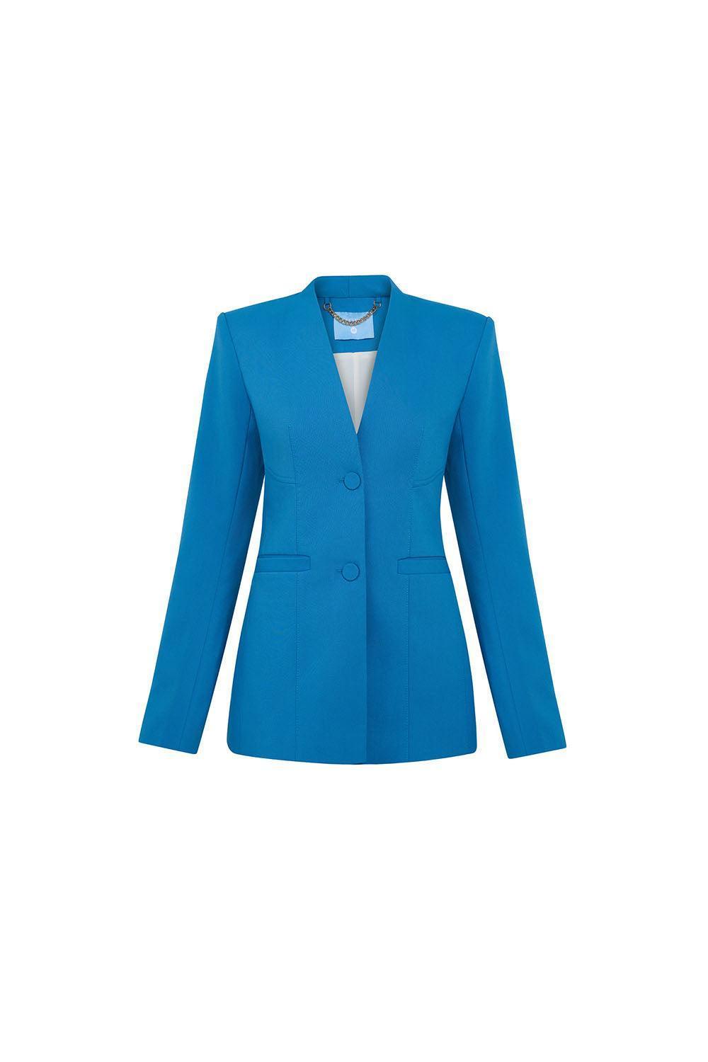 مصنوعة من قماش كريب عالي الجودة، تتميز هذه السترة بتصميم جذاب على شكل حرف A وتصميم فريد بدون طية صدر السترة. بفضل مظهرها الأنيق والمتطور، تعتبر هذه السترة مثالية للمناسبات الرسمية وغير الرسمية. ارتقي بأسلوبك واشعري بالثقة في هذه القطعة التي لا بد من اقتنائها.