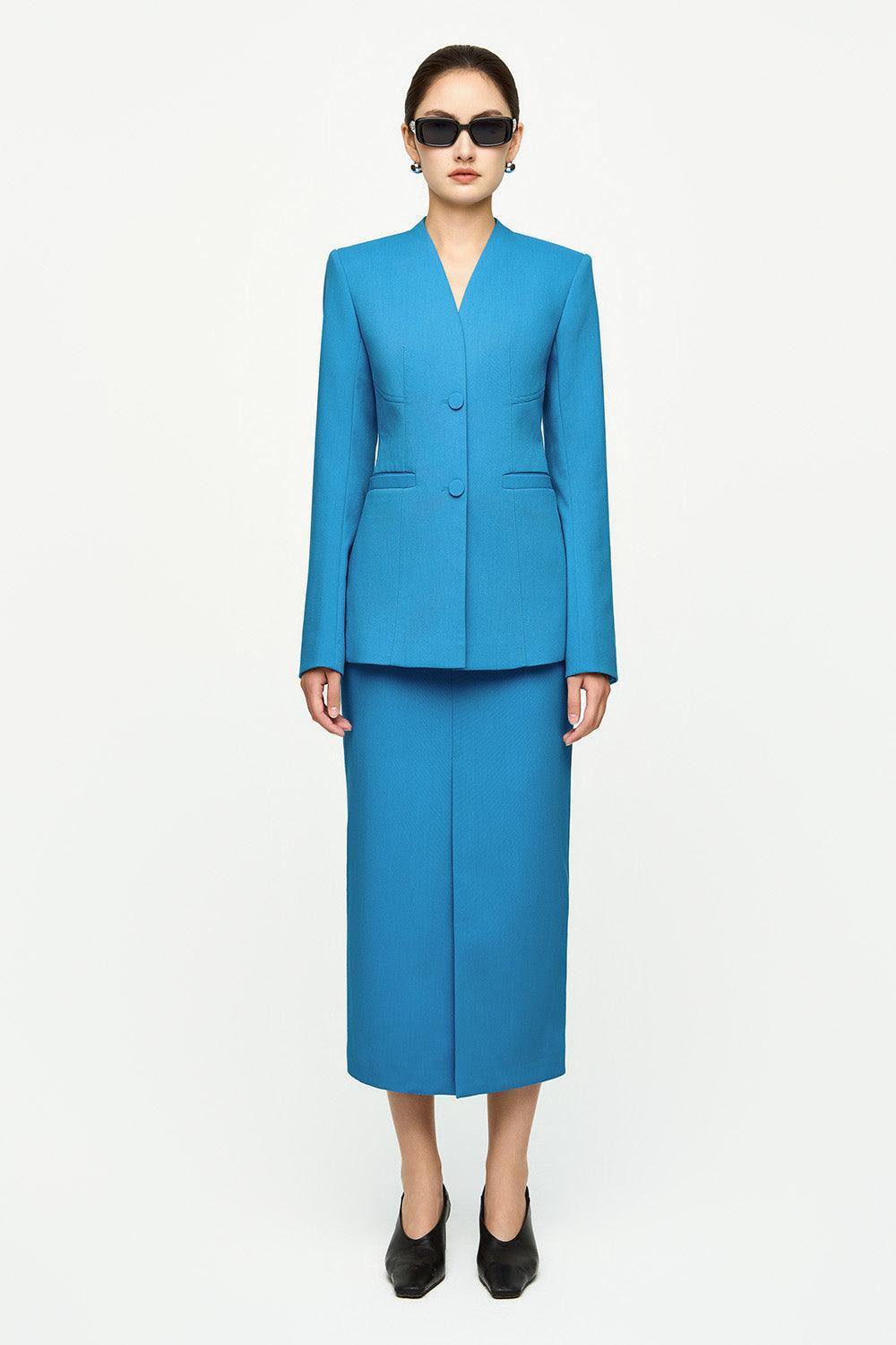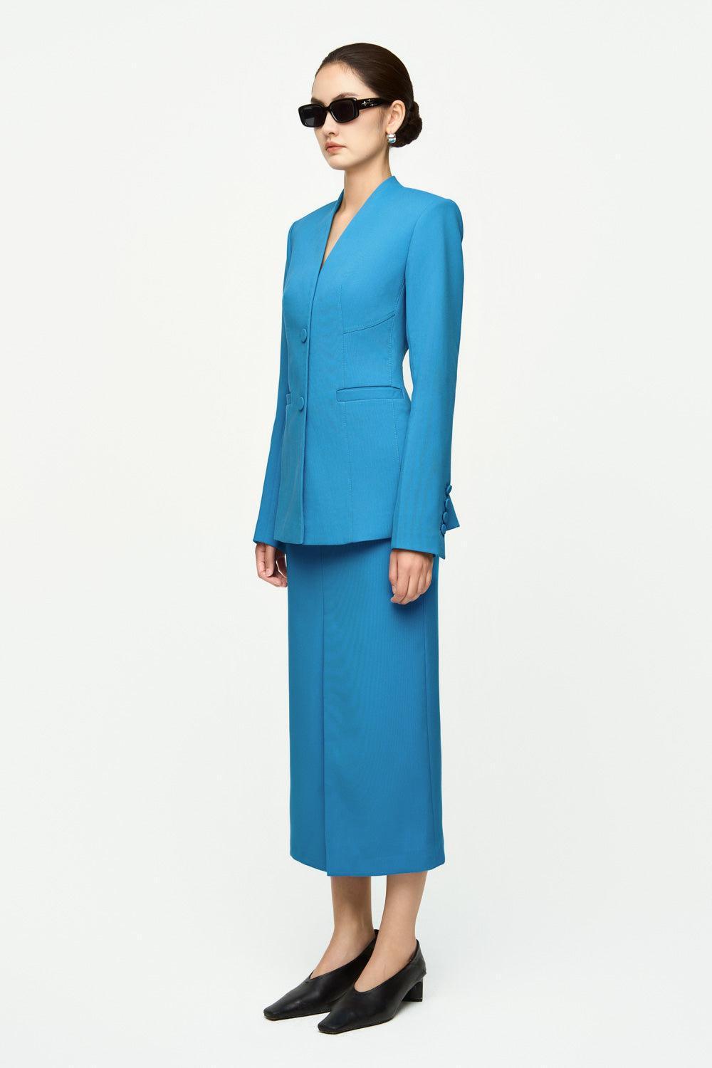 ميزات خاصة: لا صدرية, السهام تمثال نصفي مزدوج, غطاء زر من القماش المطابق, تقنية الملاءمة نصف مبطنة, وحيد الصدر
