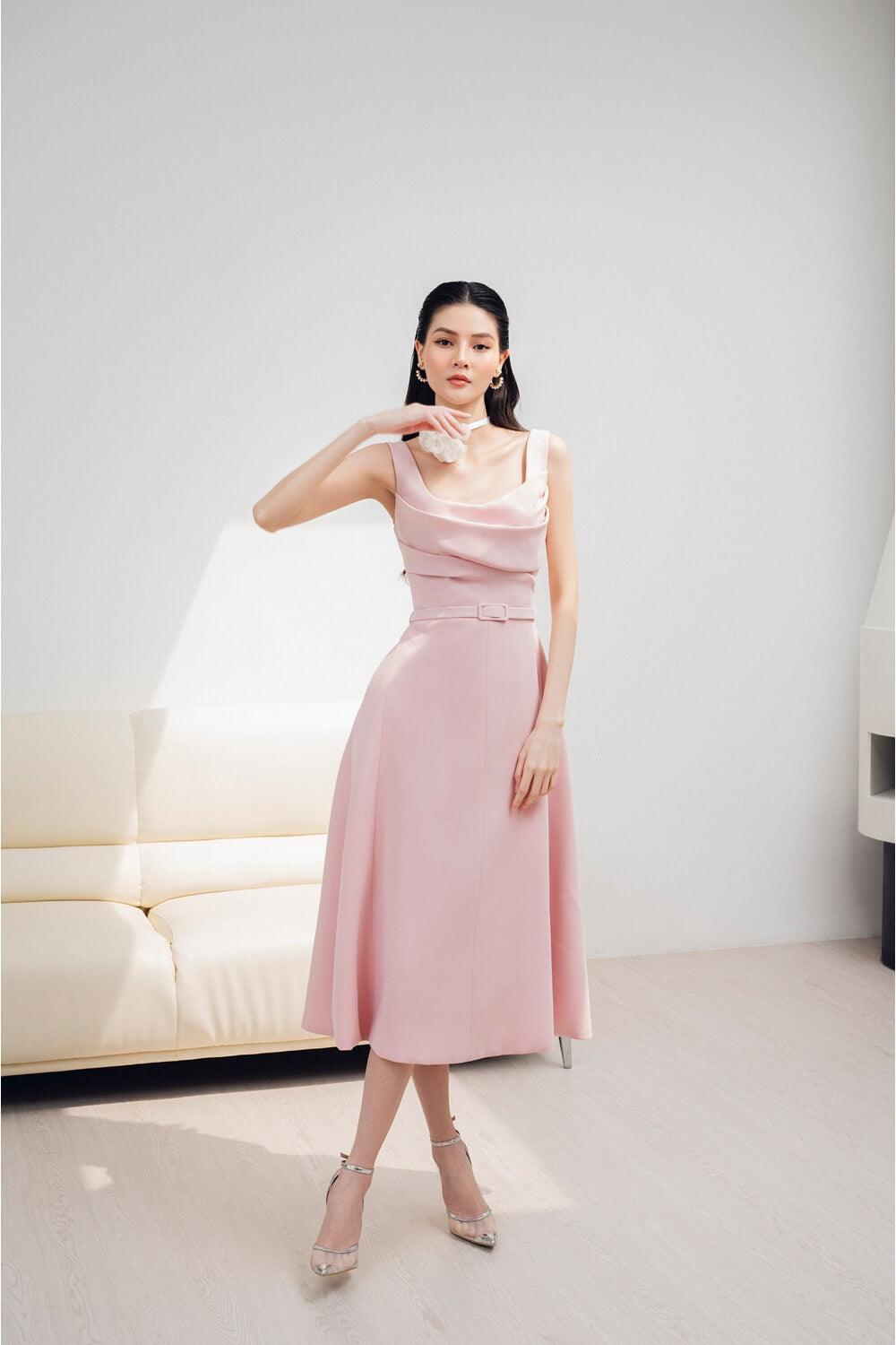 على درجة وردية لطيفة، يمنح الفستان من ترتديه لمسة جميلة وأنثوية لكنه لا يزال ينضح بأناقتها. يتم اختيار مادة عالية الجودة لإضفاء المظهر الأكثر عصرية على المنتج.