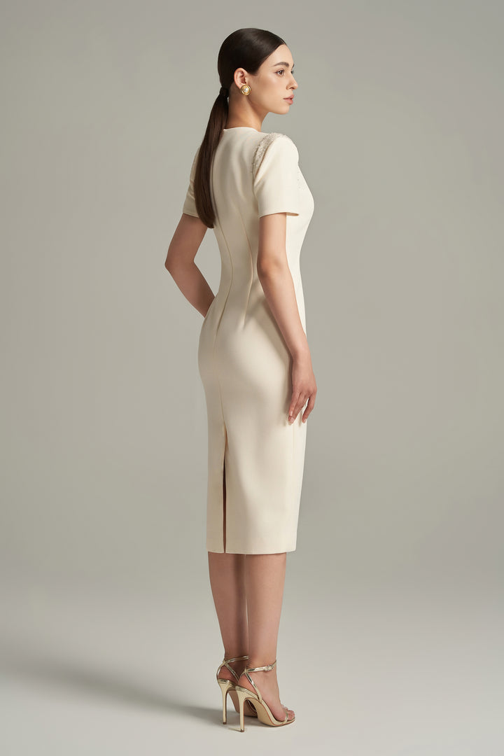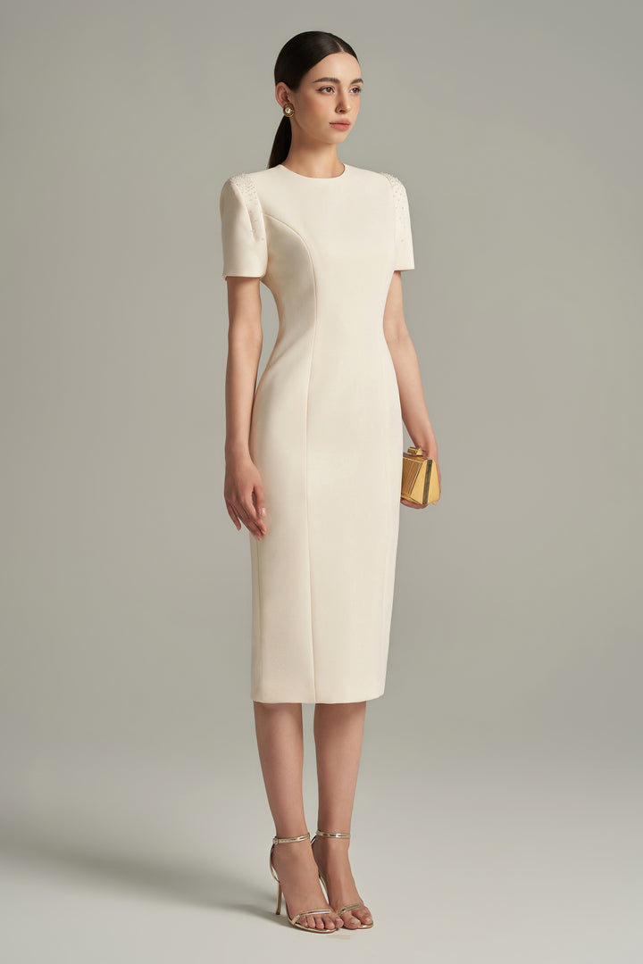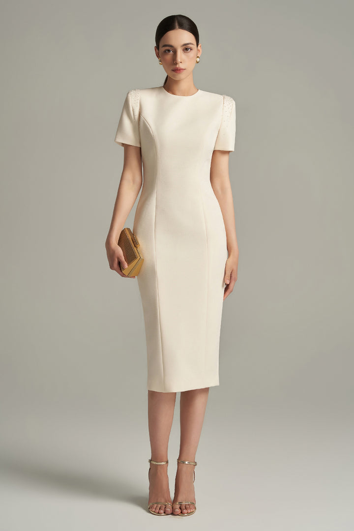 Fernanda Bodycon Bead Scuba Calf Length Dress