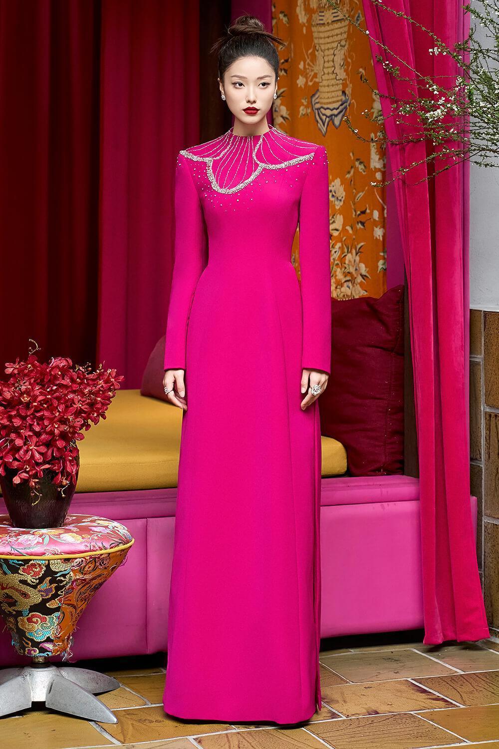 * ملاحظة: تم رسم صورة منتج الفستان بناءً على منتج ao dai وهي كمرجع فقط. لن تحتوي منتجات الملابس على شقوق على كلا الجانبين.