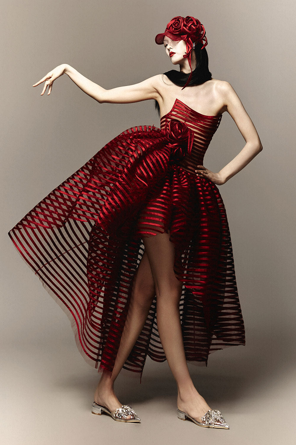 Made with soft, breathable mesh fabric and a modern open shoulder design, this dress is both comfortable and stylish. The perfect choice for any special occasion, the flattering ball gown silhouette will make you feel elegant and confident.