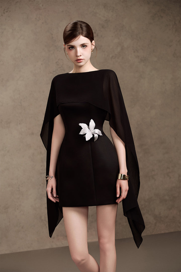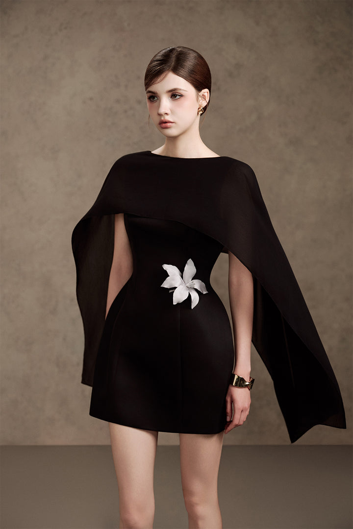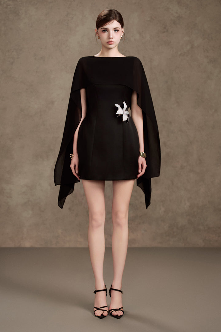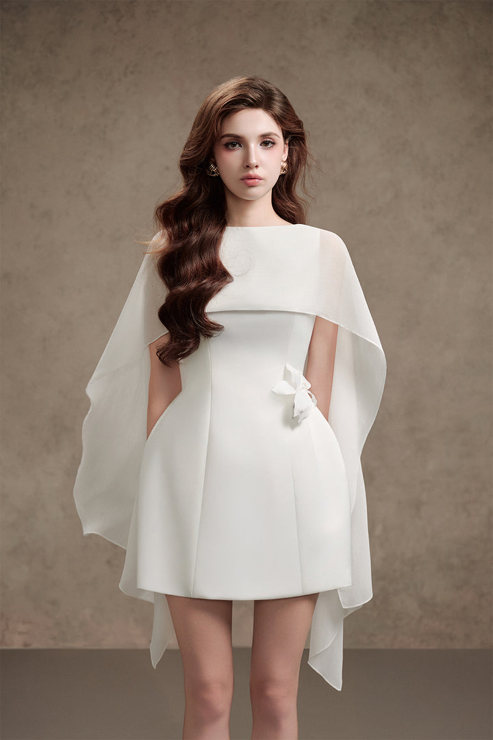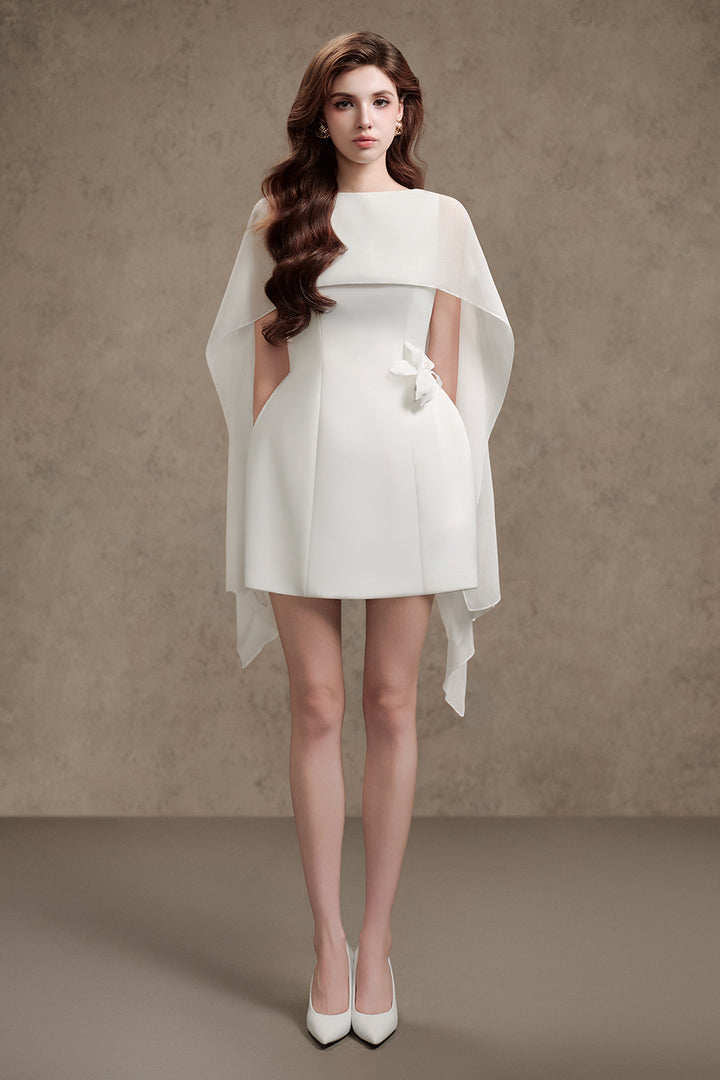 Lilian A-line Cape Shoulder Taffeta Mini Dress