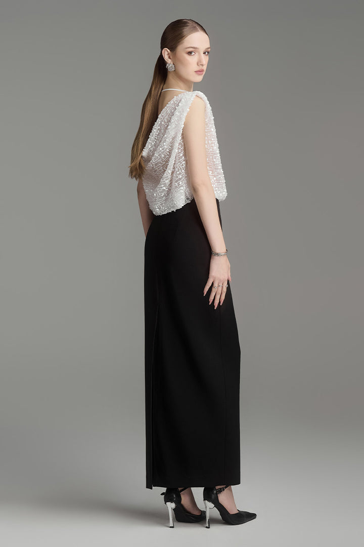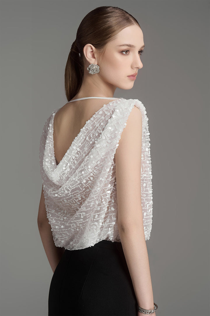 Special Features Sheer design, Scooped back neck, Detailed sequins