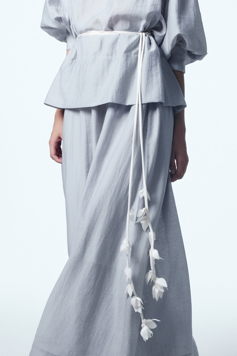 This belt features delicate flower tassels that sophisticatedly touch any outfit. Crafted from a premium rayon blend, it combines durability with a soft, luxurious feel. The floral detailing creates visual interest while maintaining a versatile aesthetic suitable for both casual and formal ensembles.