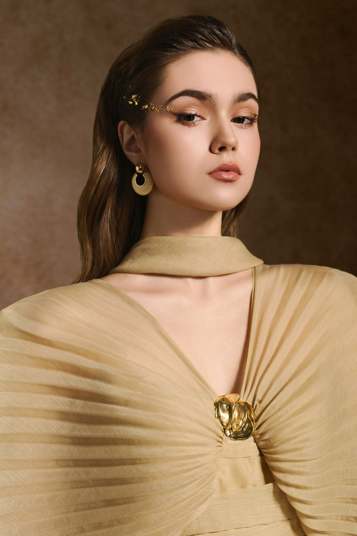 | Special Features | Wide pleated sleeves with cuff, Gathered bodice, Layered |