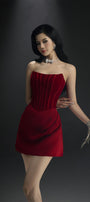 Corset design, Pleated on waist to create creases, Padded chest, Back zipper
