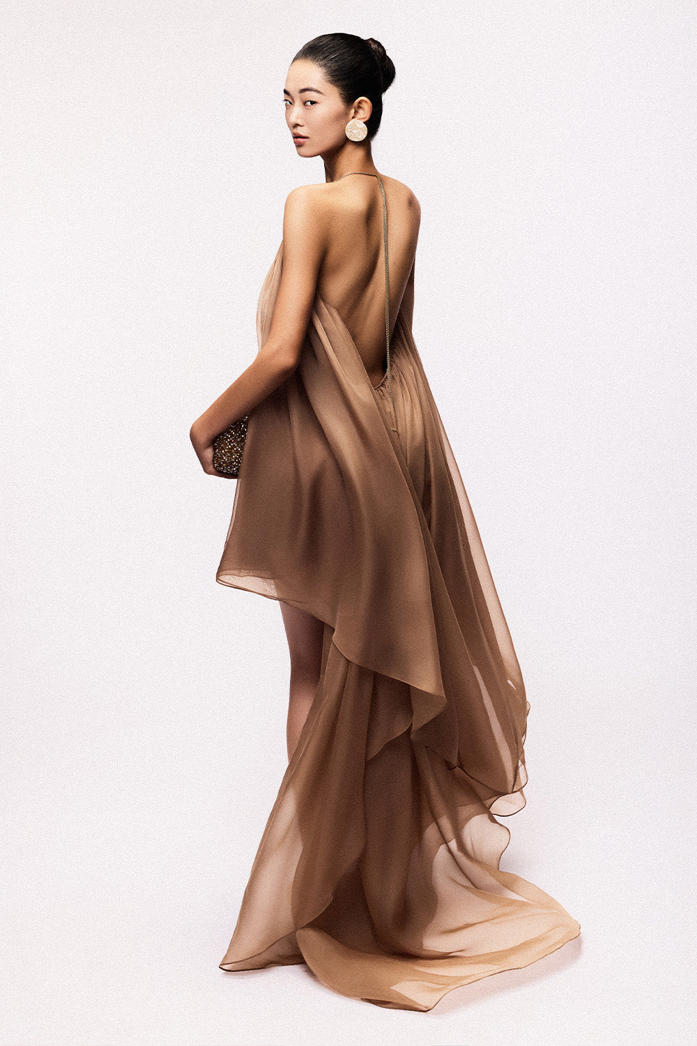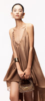 The dress offers a sophisticated silhouette with its unique asymmetric design and delicate chiffon fabric. The V-neckline enhances elegance, while the lightweight material provides graceful movement, perfect for evening events or special occasions. This mini dress balances modern style with refined comfort, making it an expert choice for a standout wardrobe piece.