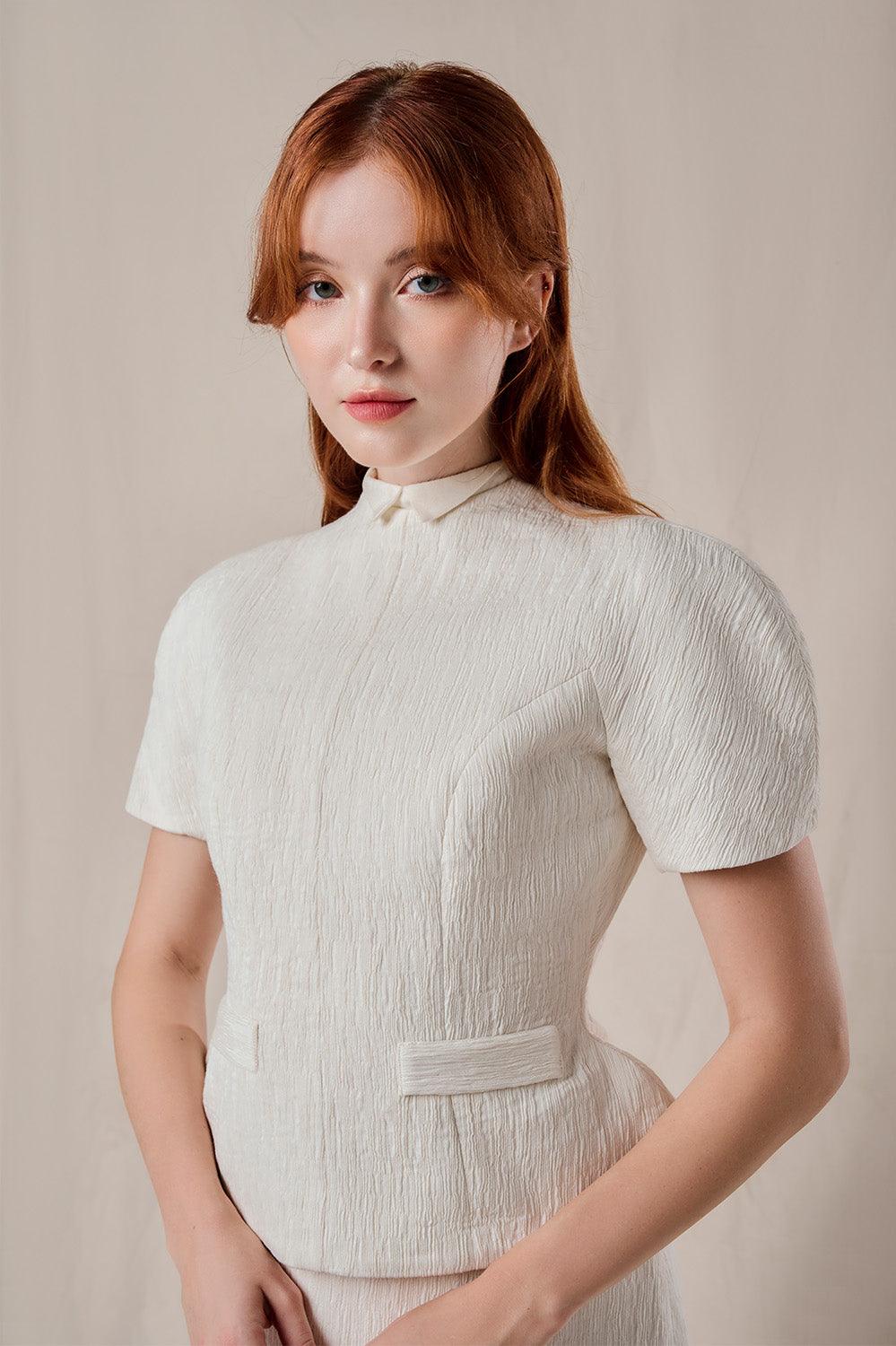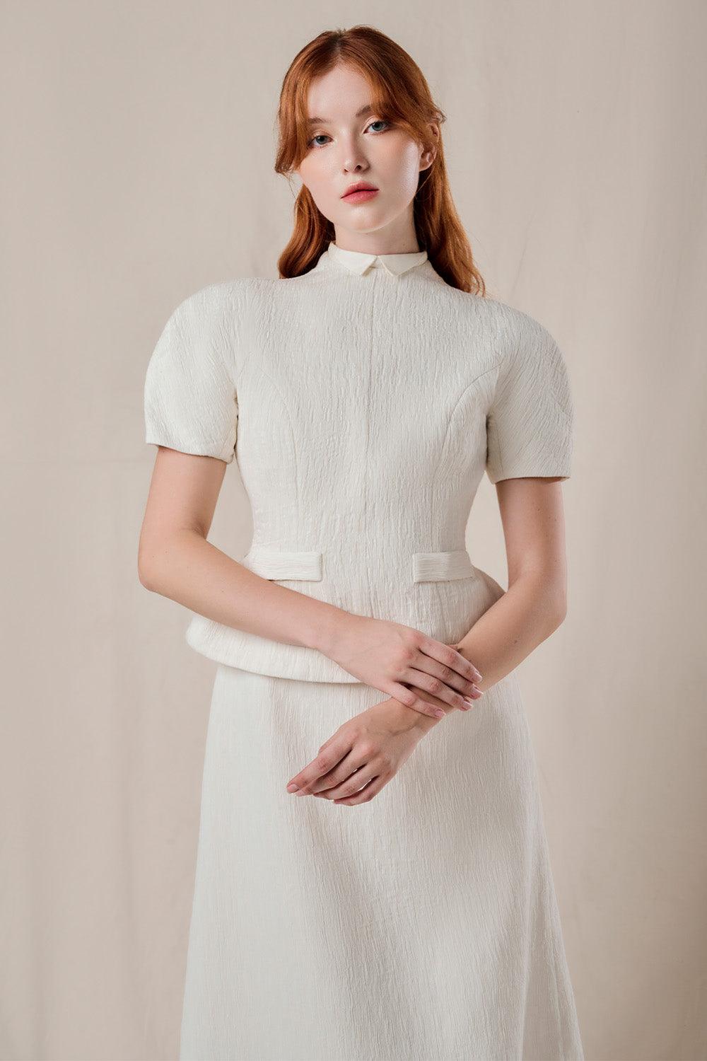 Sarah Peplum Puffy Sleeved Ribbed Burlap Midi Set