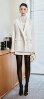 أهم ما يميز السترة هو التباين الدقيق بين الأنماط والمواد. شكل المنتج قوي وله طابع عتيق من الثلاثينيات مما يضيف إلى الجمال الأنيق للزي بأكمله.
