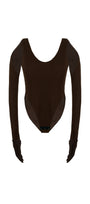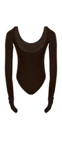 This bodysuit offers a sleek, form-fitting silhouette crafted from soft, stretchy jersey fabric for all-day comfort. The elegant scoop neck enhances neckline definition, while the integrated glove sleeves provide a seamless, modern edge, combining style and ease of movement in one sophisticated piece.