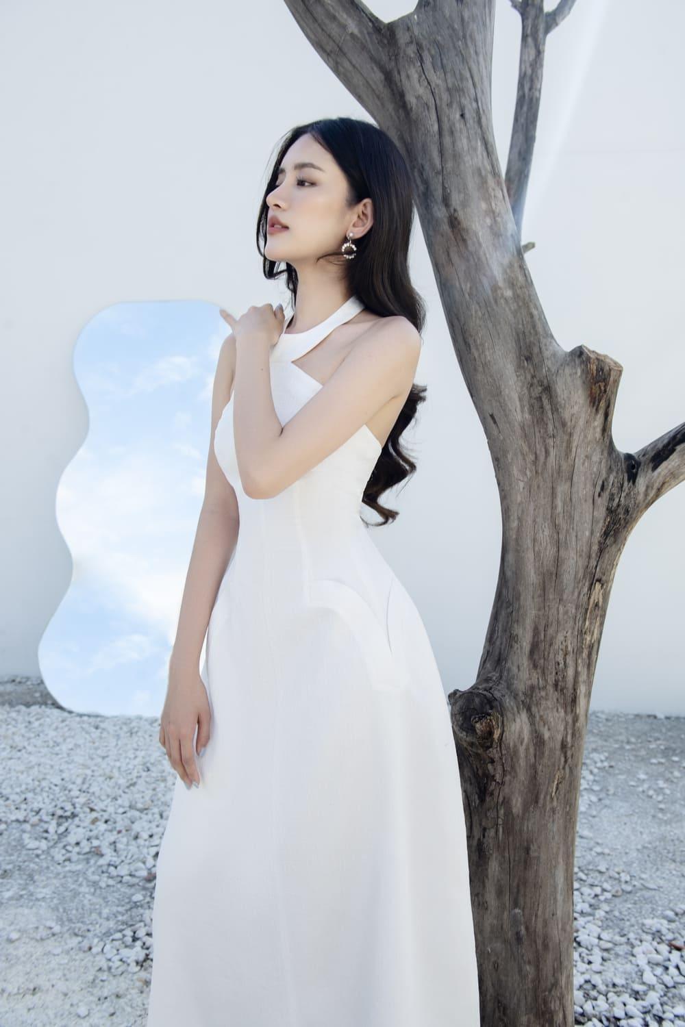 Uri A-line Halter Neck Ribbed Scuba Midi Dress