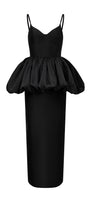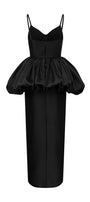 Expertly crafted from luxurious taffeta, this peplum maxi dress features a flattering sweetheart neckline and elegant gathering details. Its timeless silhouette is perfect for formal events, evening galas, or upscale celebrations.