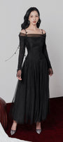 Starla A-line Draped Mesh Ankle Length Dress