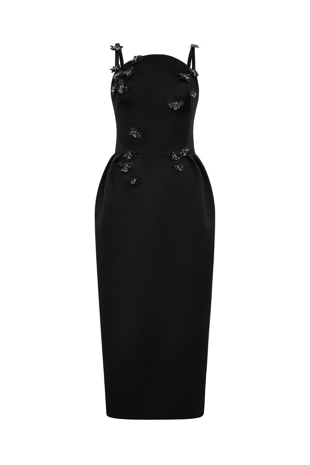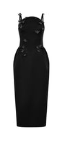 Beaded Pegged Flower Applique Taffeta Midi Dress