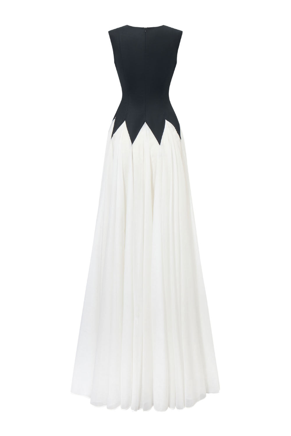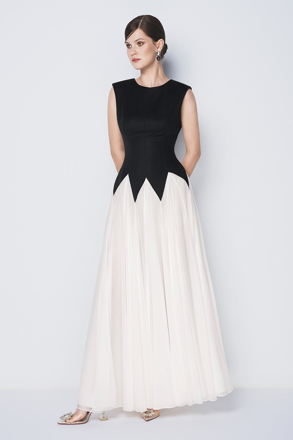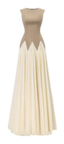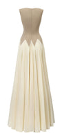 Effortlessly elegant, the dress is perfect for any formal occasion. Made with luxurious khaki silk, the pleated floor length design is both timeless and flattering. The flowing A-line silhouette accentuates your curves, making you the star of the night.