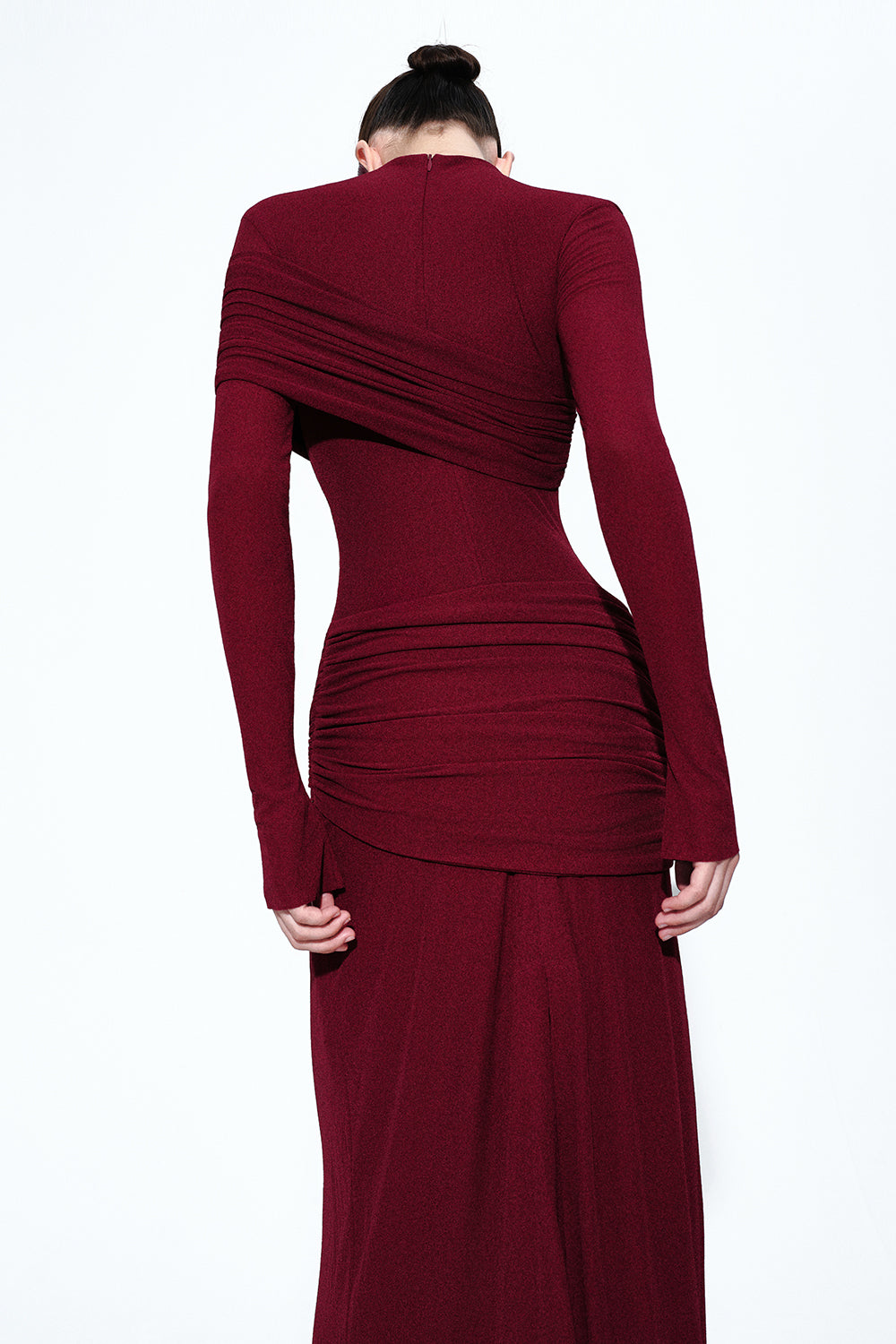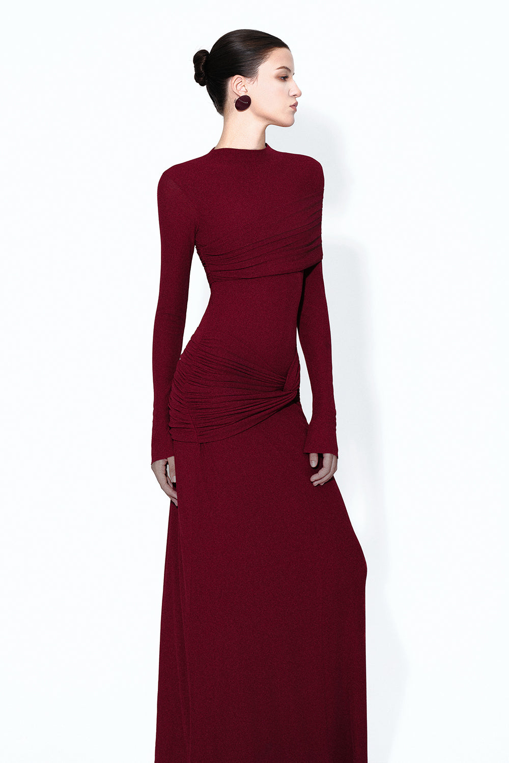Elevate your look with this expertly tailored cotton sheath maxi dress, featuring a sophisticated high neck, regular sleeves, and refined draped details. Its classic silhouette makes it ideal for formal events, evening gatherings, or upscale daytime occasions.