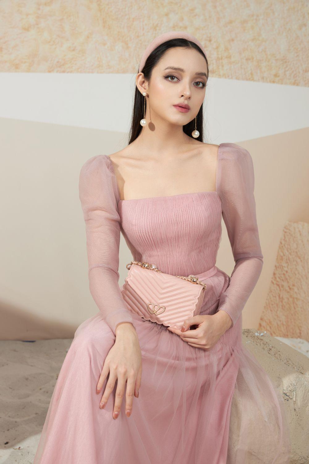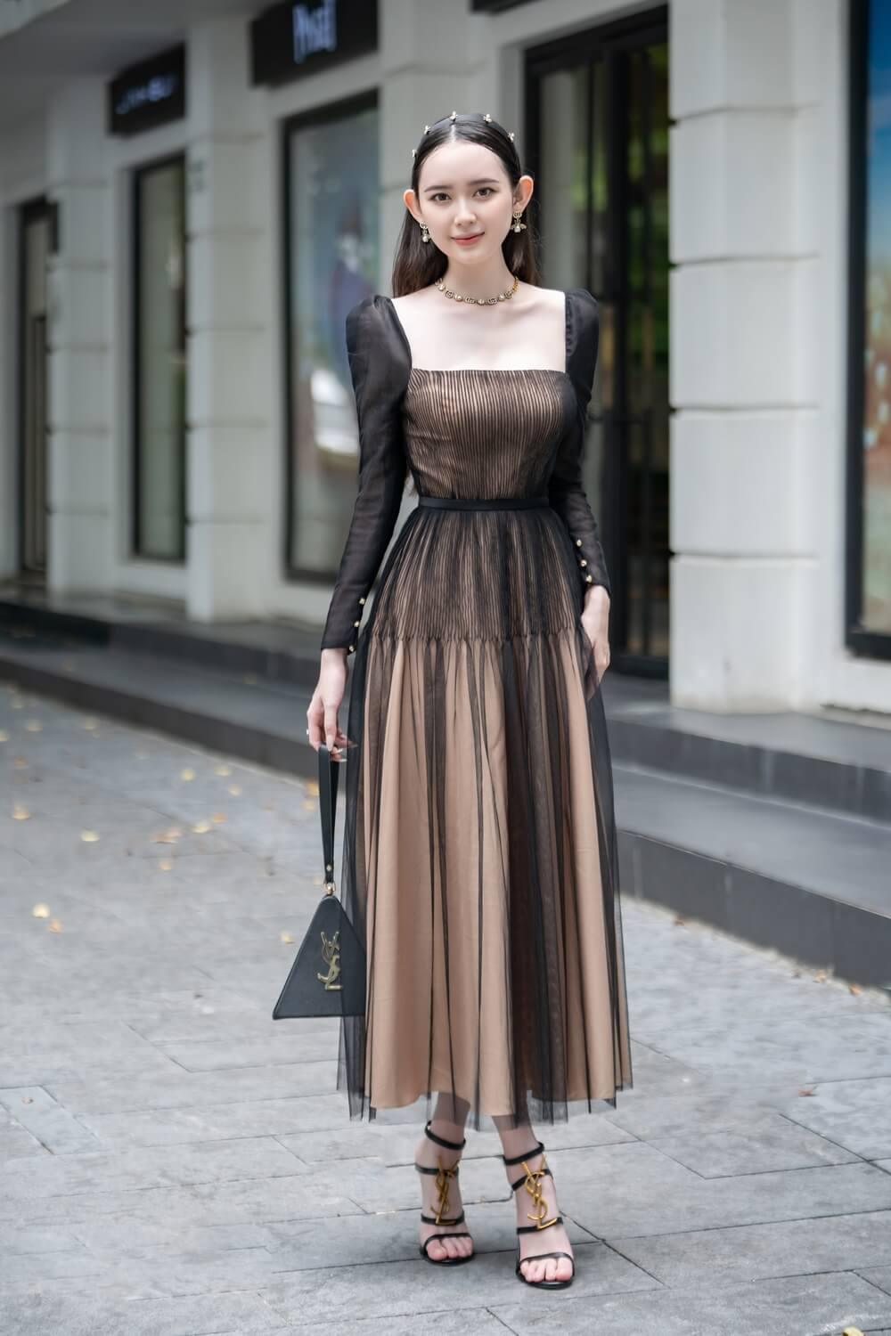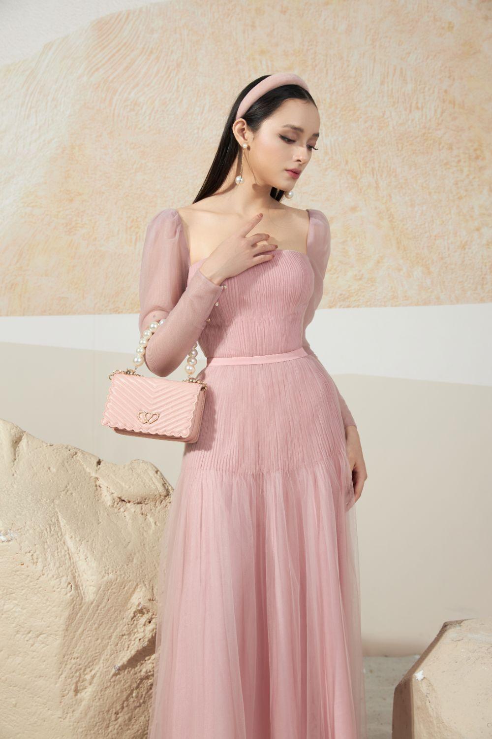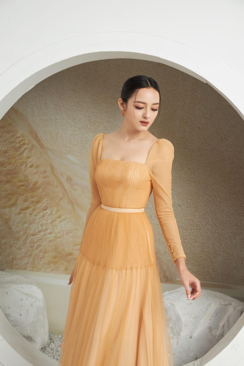 التصميم مصنوع من قماش شبكي ناعم مع تقنية طيات فاخرة، وأكمام طويلة، وأكتاف منتفخة. خط العنق المربع كلاسيكي وحديث على حد سواء، مما يمنح السيدات مظهرًا أنثويًا وحنينًا.