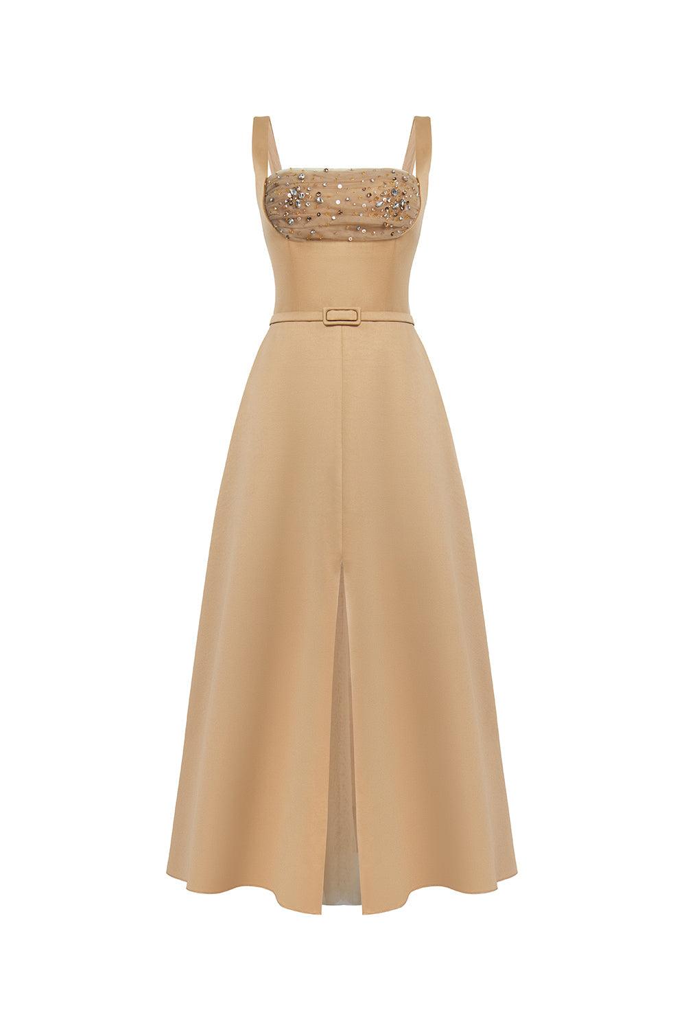 Liora A-line Loose Strap Taffeta Midi Dress