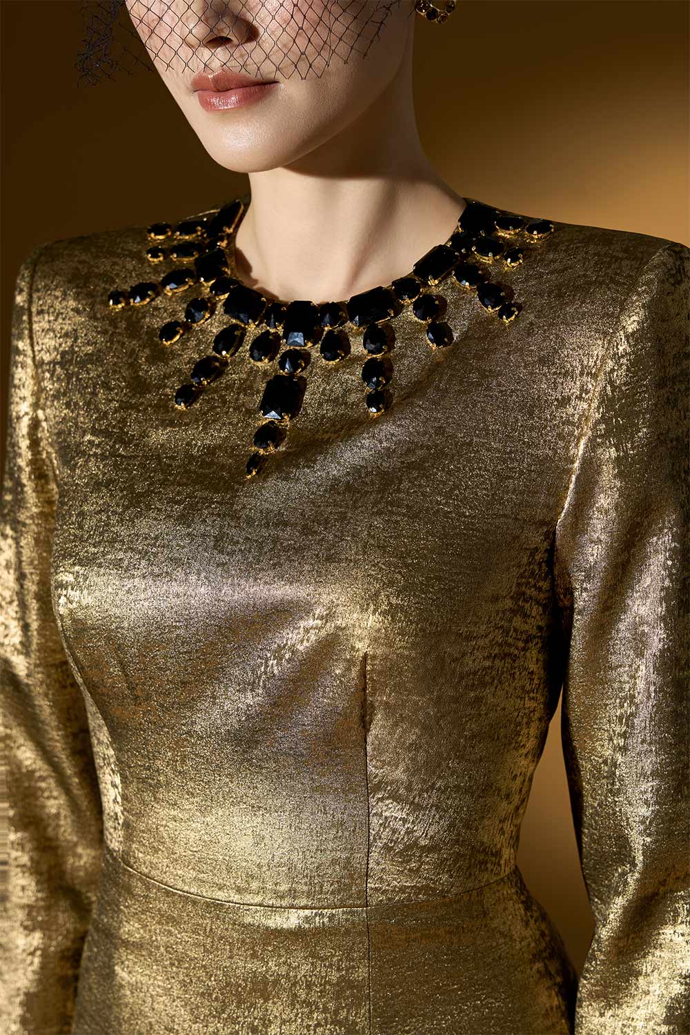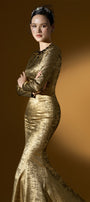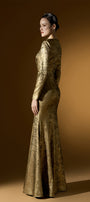 Experience elegance and sophistication in the stunning dress. The trumpet jewel neck accentuates your natural curves while the luxurious silk fabric drapes beautifully to the floor. Perfect for formal occasions, this dress exudes confidence and class.