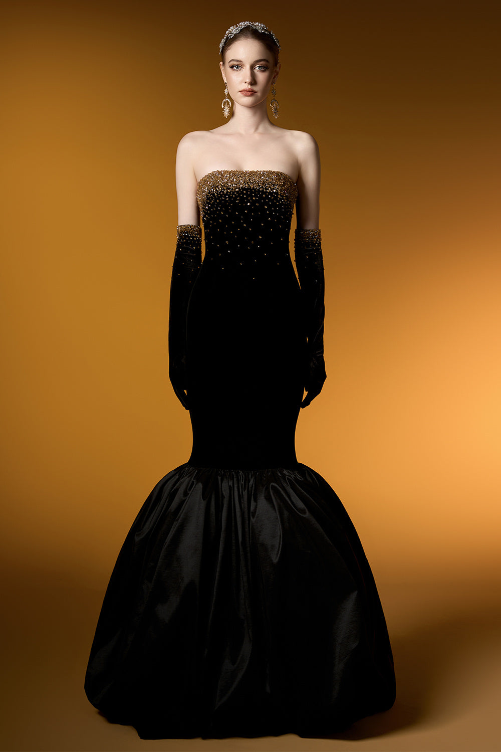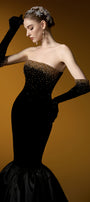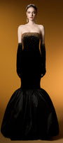 Katelyn Mermaid Straight Across Neck Velvet Floor Length Dress