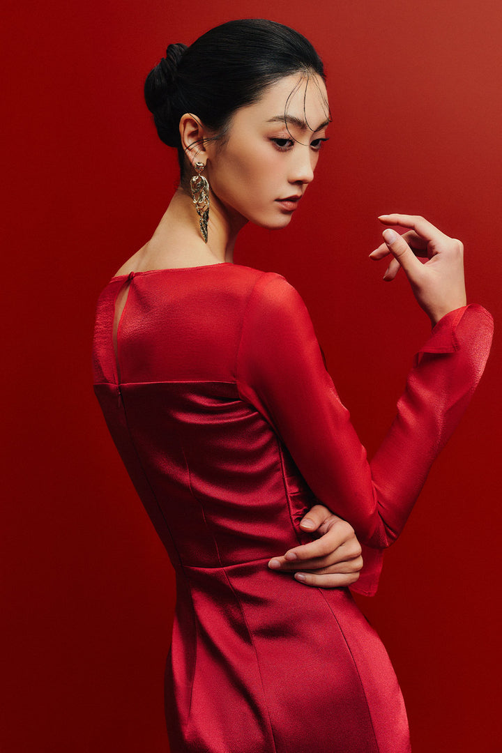 *Material: Chiffon (Shoulder and sleeves), Taffeta (Dress)